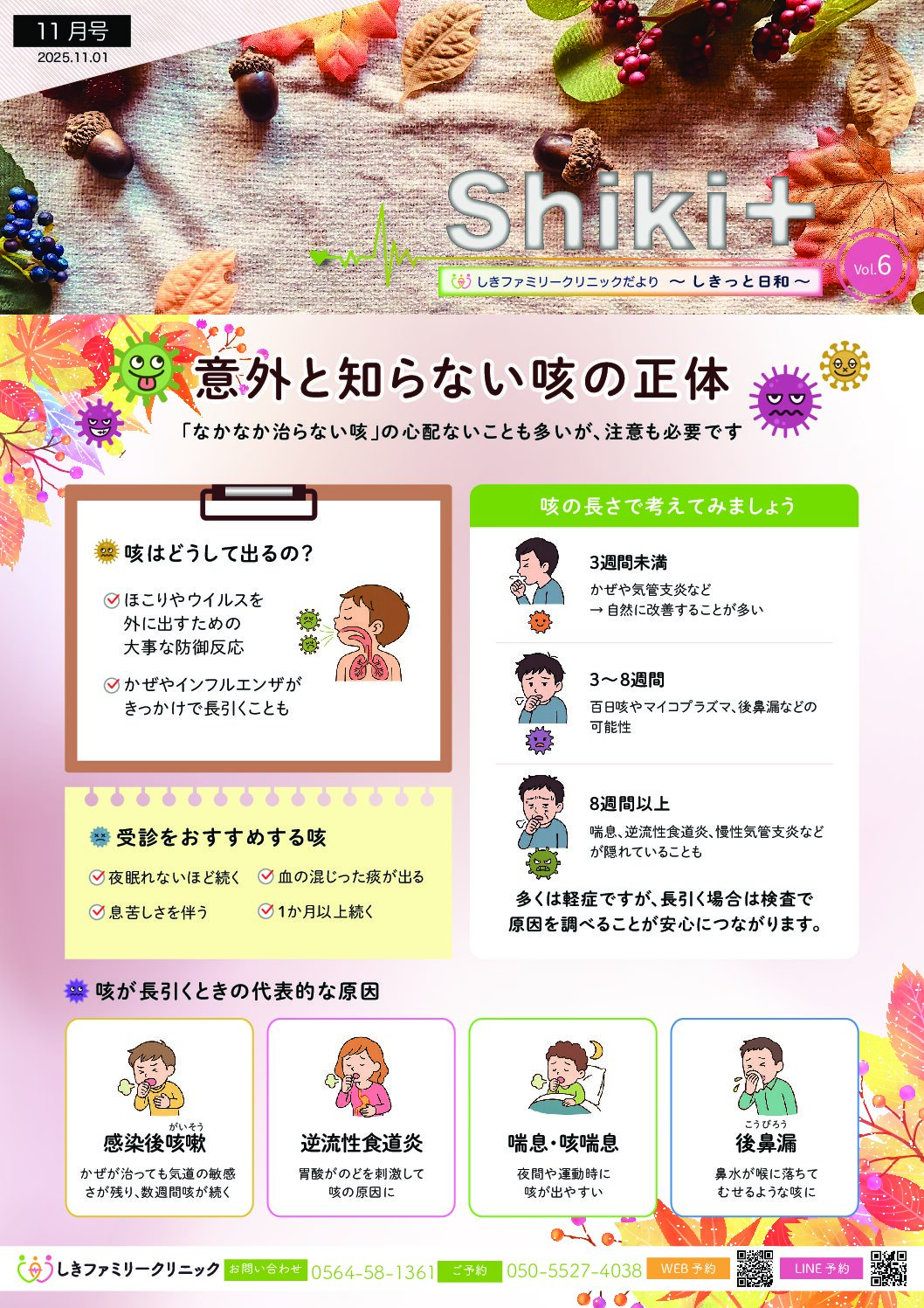 しきファミリークリニック 院長 志貴祐一郎です🫀 **「Shiki+ ~しきっと日和~」** 11月号です。 …