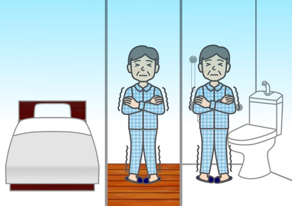 2. トイレ:暖房のない廊下やトイレは冷えやすく、特に夜間の急な移動でリスクが高まります。