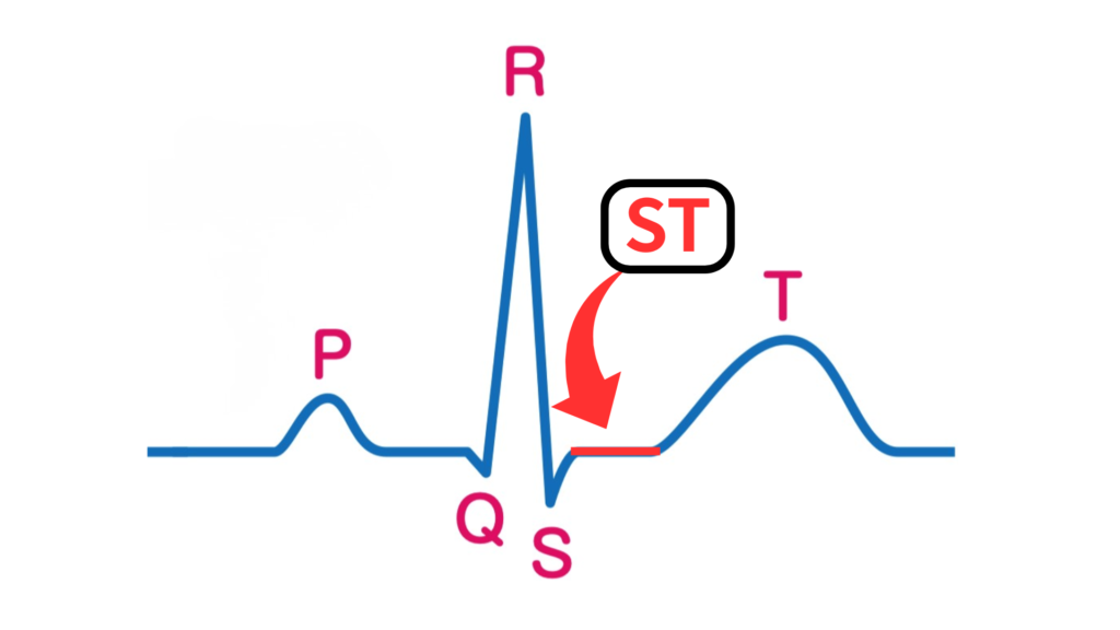心電図の波形には、山の一つひとつに名前がついています。 心臓がドクンと拍動した(QRS波)直後の、「次の波(T波)までの間の、本来は平らな部分」をST部分と呼びます。
