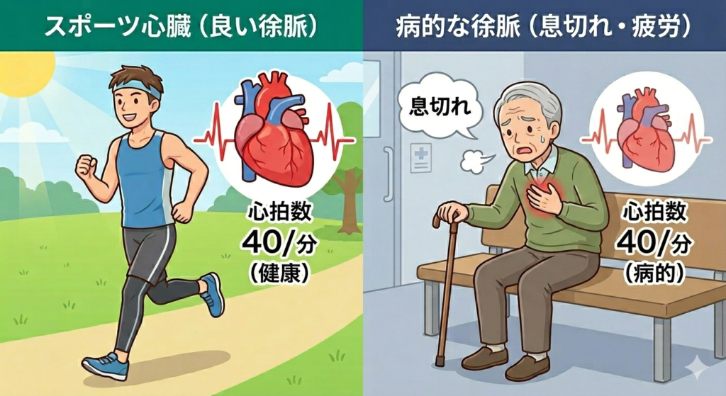これが「スポーツ心臓」と「治療が必要な徐脈」の決定的な違いです。
